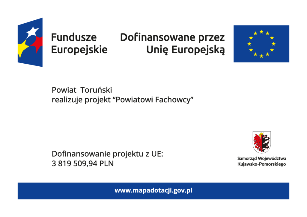 9 stycznia 2025 roku uroczyście zainaugurowano rozpoczęcie projektu edukacyjnego, „Powiatowi Fachowcy”, realizowanego w formule partnerstwa. W projekcie współfinansowanym w ramach regionalnego programu Fundusze Europejskie dla Kujaw i Pomorza 2021-2027 uczestniczą trzy samorządy powiatowe, czyli powiat aleksandrowski, golubsko-dobrzyński, toruński oraz piętnaście samorządów gminnych z terenu powiatu toruńskiego i golubsko-dobrzyńskiego. Celem projektu jest zwiększenie efektywności i jakości kształcenia zawodowego w powiecie aleksandrowskim, golubsko-dobrzyńskim i toruńskim poprzez dostosowanie do wymogów rynku pracy, rozszerzenie oferty edukacyjnej dla uczniów, rozwijanie kwalifikacji nauczycieli oraz wyposażenie pracowni zawodu w terminie do 31.12.2026. W ramach zadania przewidziano wsparcie dla przedstawicieli kadry merytorycznej szkół, wsparcie dla uczniów w postaci staży uczniowskich, szkoleń, kursów, wyjazdów edukacyjnych oraz doposażenie wyposażenia szkoły.