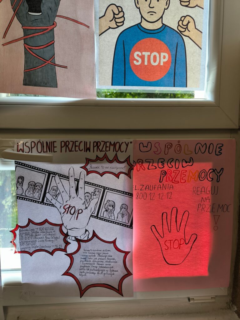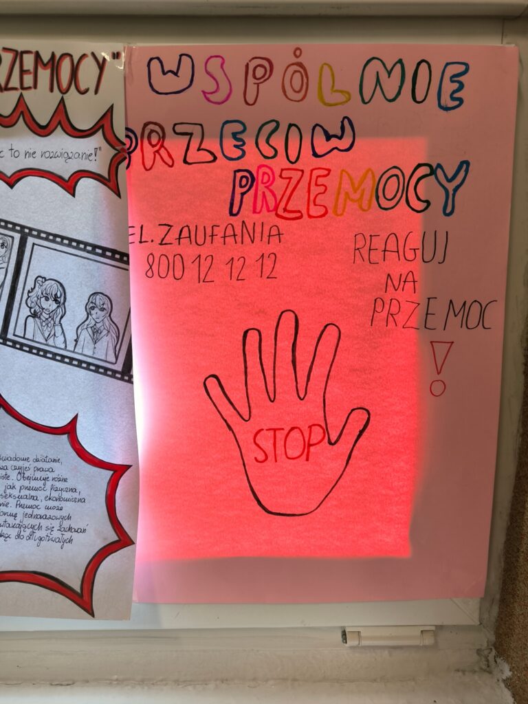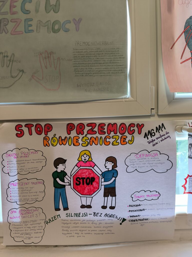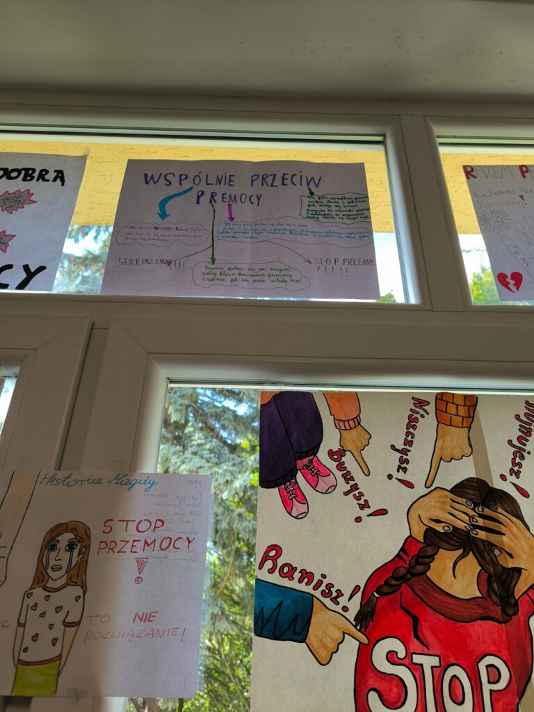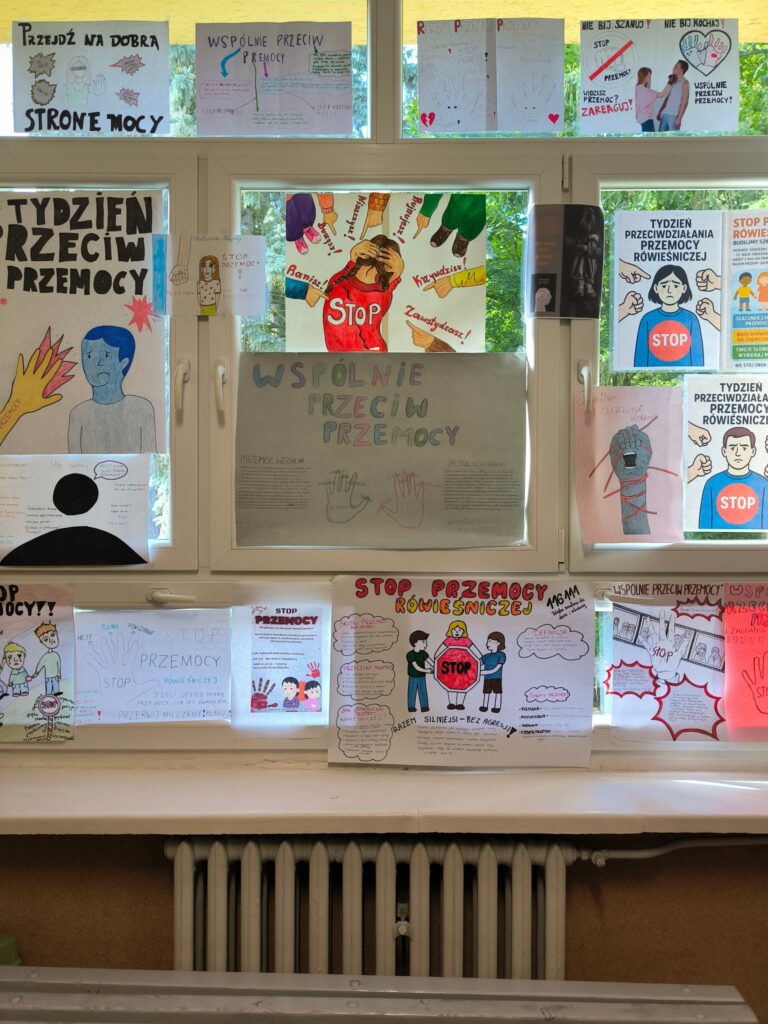 Jednym z działań w Tygodniu Przeciwdziałania Przemocy Rówieśniczej w naszej szkole było stworzenie plakatów pod hasłem „Wspólnie przeciw przemocy” oraz wykonanie gazetki szkolnej. Zobaczcie efekty pracy naszych uczniów!