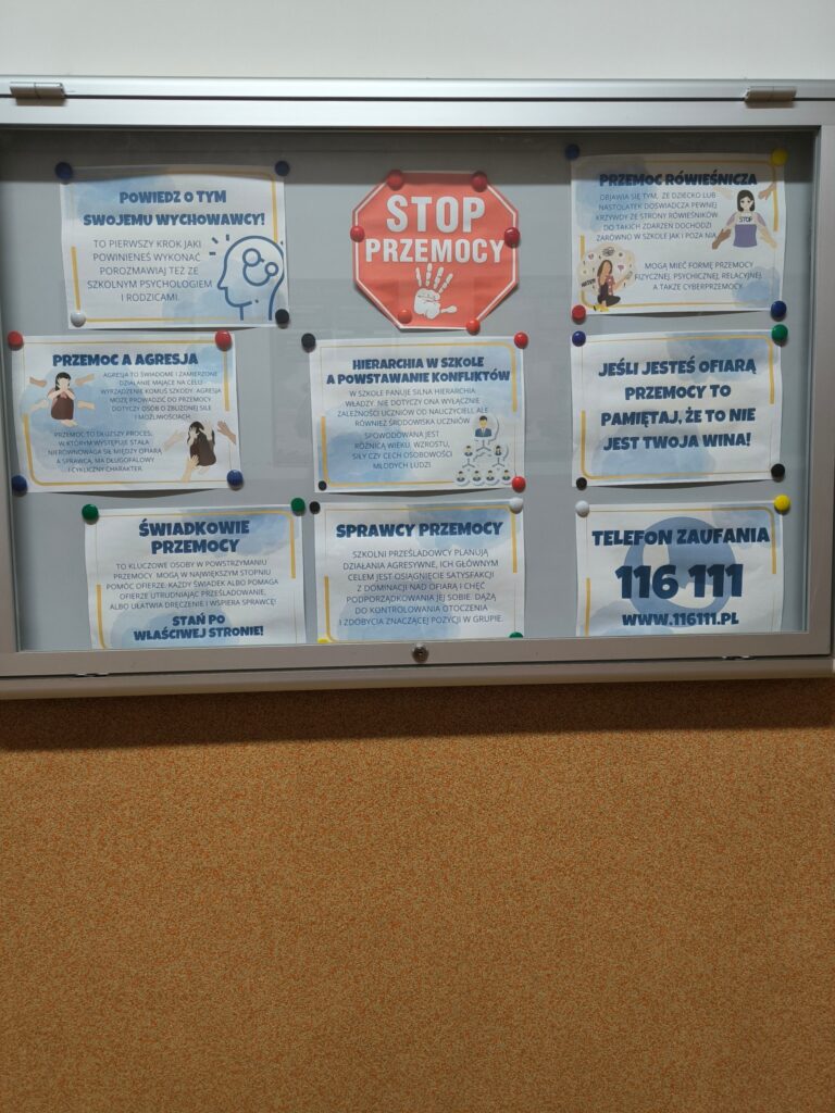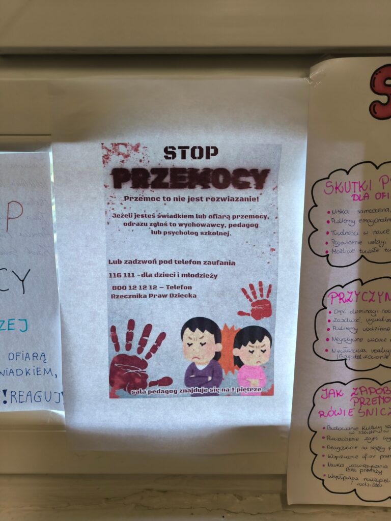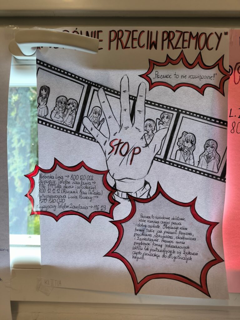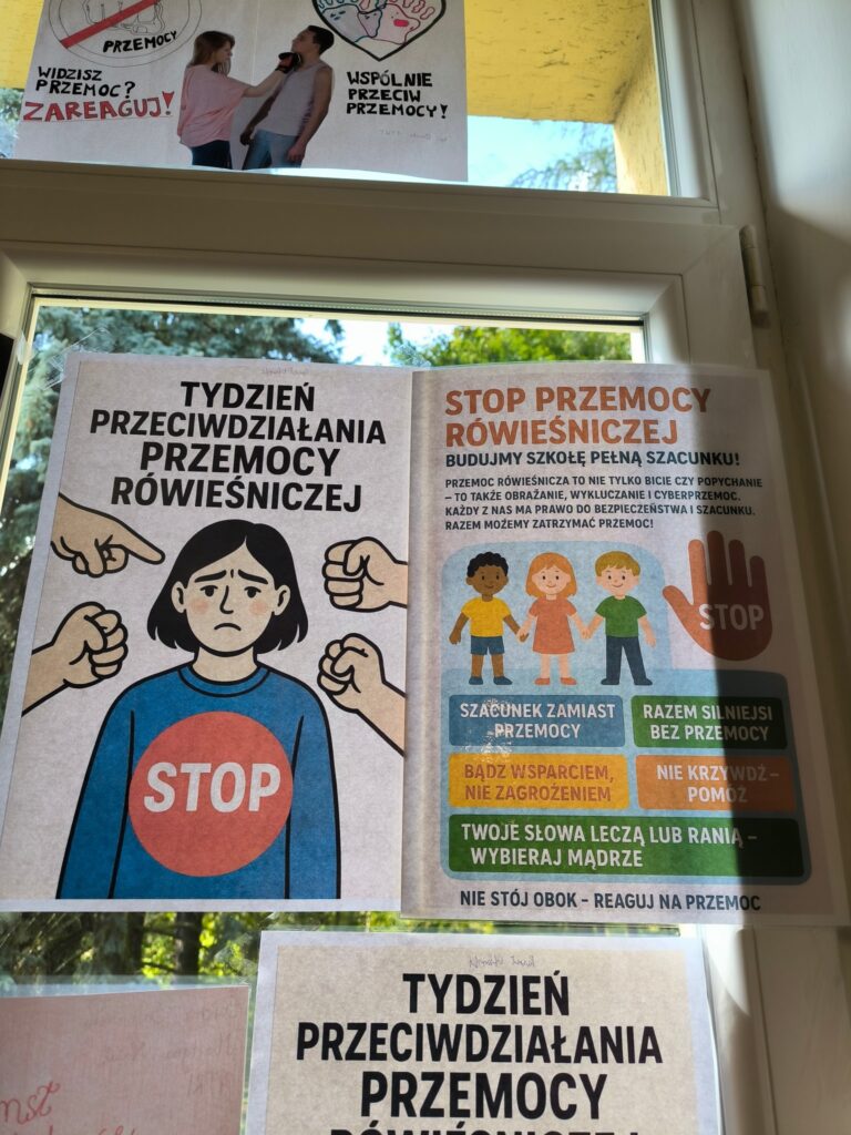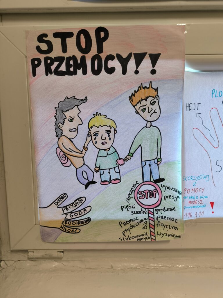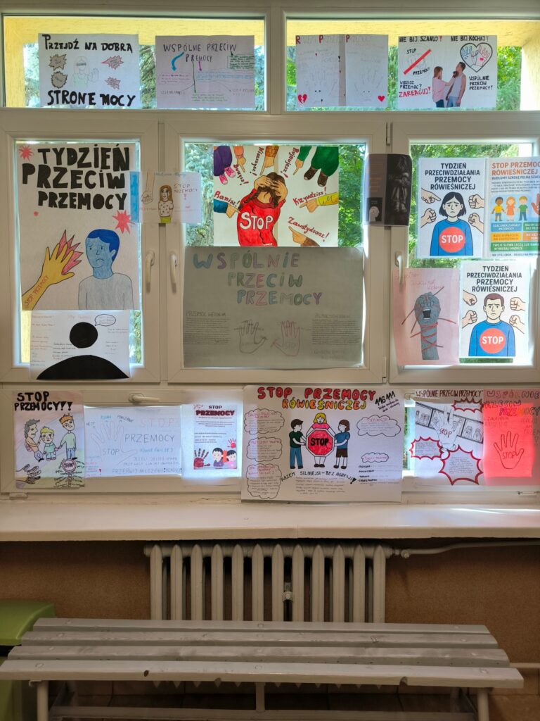 Jednym z działań w Tygodniu Przeciwdziałania Przemocy Rówieśniczej w naszej szkole było stworzenie plakatów pod hasłem „Wspólnie przeciw przemocy” oraz wykonanie gazetki szkolnej. Zobaczcie efekty pracy naszych uczniów!